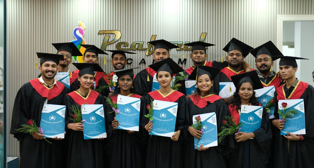 Peafowl e-learn academy is headquartered in Thrissur, Kerala, providing online training for high-demand careers in aviation, logistics, and hospital administration.